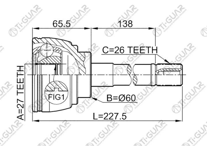 ШРУС наружный /правый /левый /TI-GUAR для Toyota Hiace 1989- HILUX 1988-; 27*60*26; TG-9514; (JCT0046A JCT0049 TO-E014) 4343026013 CO7526 N11492H